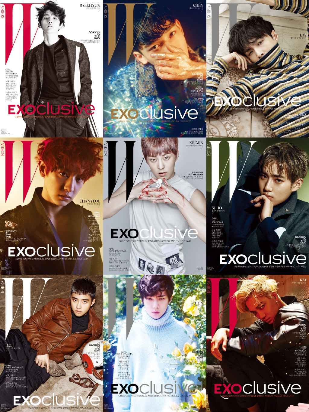 最近携正规三辑回归的EXO组合分别和不同摄影师合作拍摄了某杂志画报。