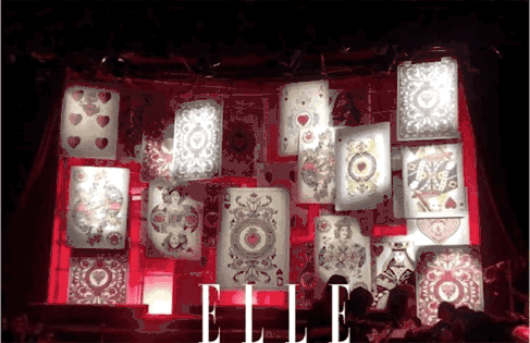 走进秀场,依然能见到熟悉的“红心Q”,而且Dolce&Gabbana更是将每张扑克牌都放大好多倍后,悬挂在秀场中。每张牌的标志都是红心哦!