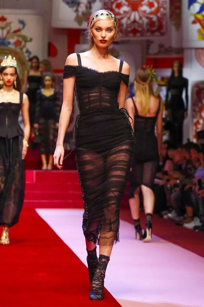 而各式薄纱质感的礼服裙则在热情的意式风格中透露出一丝性感,是Dolce&Gabbana最喜爱的意大利女郎形象!
