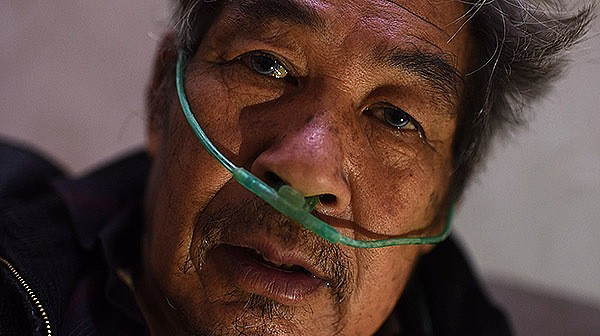 2017年11月10日消息,河南南阳。大儿子病重期间,周志军花1000块钱为儿子买了村里一个去世尘肺病人的吸氧机。如今儿子去世,这台吸氧机又传给了周志军。由于使用频率高,吸氧机发出的噪音和玉石打磨机差不多,但周志军离不开它。