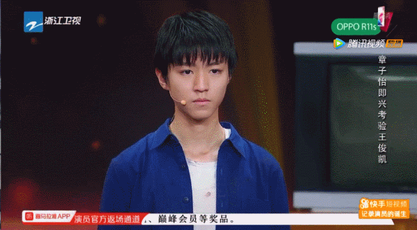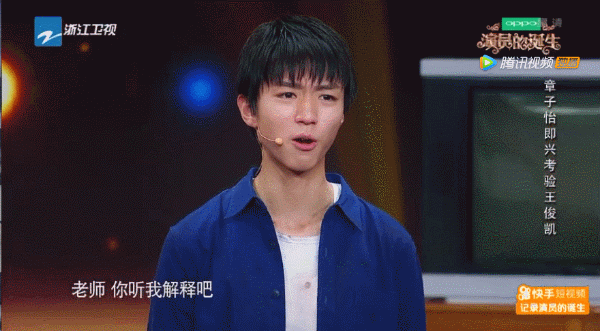 其实跟大家想的一样,这段就是现场的一个临时小品,情景设定是,王俊凯饰演的学生跟章子怡饰演的老师因为迟到的问题吵了起来: