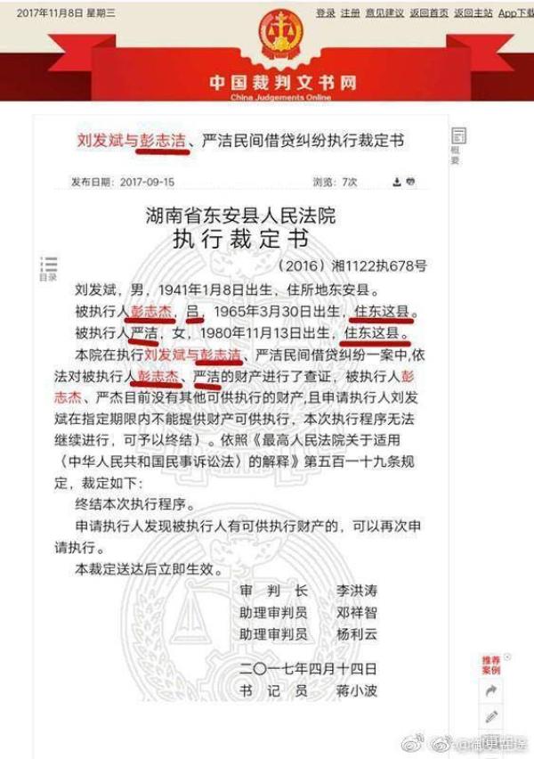 据网友微博曝光的东安县法院一份案号为(2016)湘1122执678号的执行裁定书显示,文中被执行人“彭志杰”、“严洁”两人的名字,分别出现了“彭志洁”、“严杰”的写法,性别“女”错成了“吕”,“东安县”错成了“东这县”。