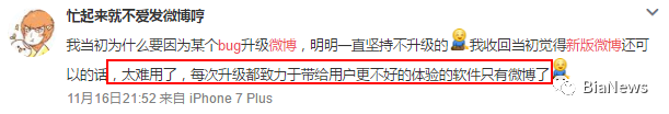网友评价微博每次升级都给用户更不好的体验
