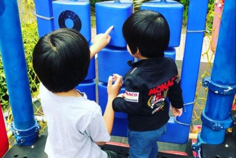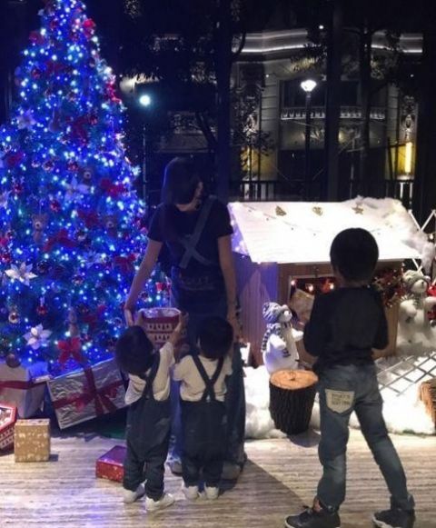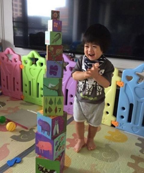 虽然照片中没有Kimi,但是从照片中那高高的积木来看,想必这个积木也是8岁的Kimi陪着双胞胎弟弟玩耍时搭起来的,毕竟双胞胎弟弟的身高还不足以搭出这么高的积木。