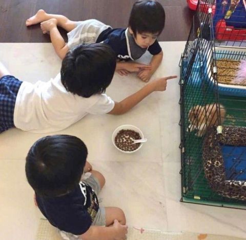 8岁的Kimi不仅不会和弟弟们争宠,对于两个双胞胎弟弟也是超有耐心,经常会帮着爸爸妈妈照顾两个双胞胎弟弟,为此陈若仪每次出门都会带着Kimi。