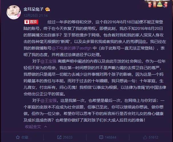 并表示这是最后一次在网络上与王宝强对话,“一个家庭的变故本不应成为社会话题。“希望王宝强作为一位父亲可以思考下所言所行是否会对儿女的身心健康及成长造成伤害?并做好了面对孩子们长大成人后目光的准备!”
