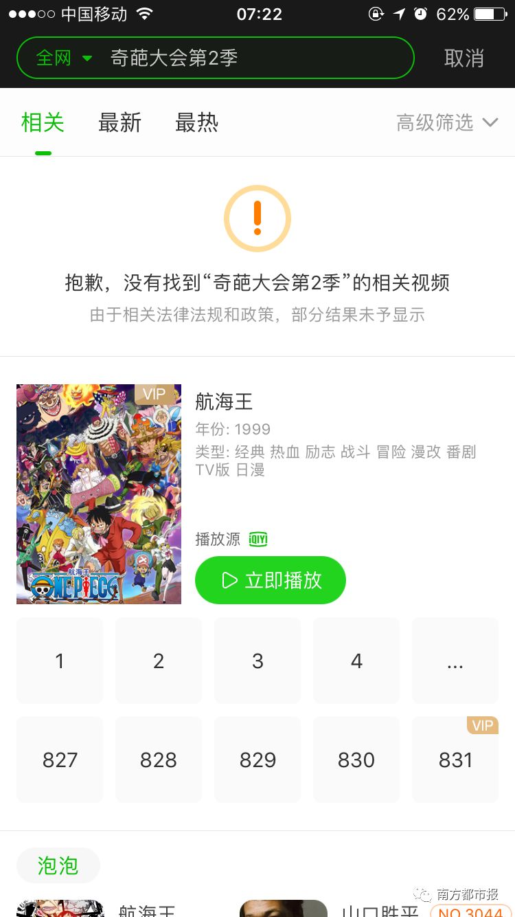 今早,南都君在爱奇艺客户端搜索《奇葩大会》第2季,显示“抱歉,没有找到’奇葩大会第2季’的相关视频”提示字样,确认该系列视频已全部下架。但第一季内容仍能正常播放。
