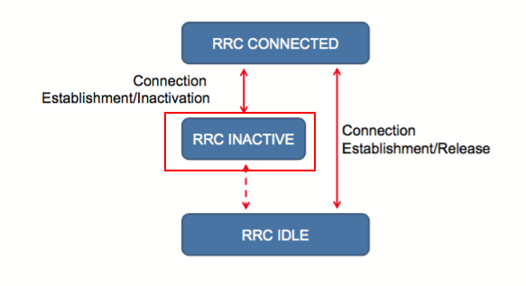 首先在RRC状态上,与LTE只有RRC IDLE和RRC CONNECTED两种RRC状态不同,5G NR引入了一个新状态——RRC INACTIVE。