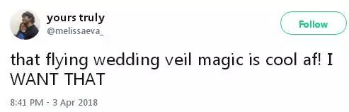 That flying wedding veil magic is cool af! I WANT THAT 这一招也太炫了,我想要!