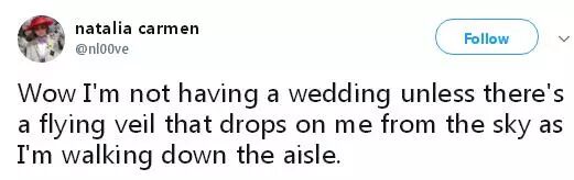Wow I’m not having a wedding unless there’s a flying veil that drops on me from the sky as I’m walking down the aisle.