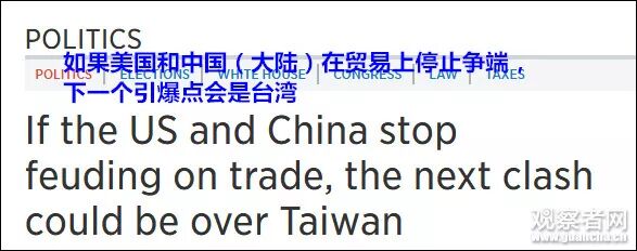 原标题:美媒:如果中美贸易战缓和,下一个引爆点是台湾