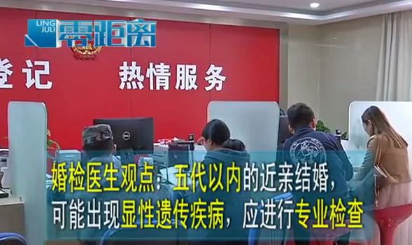 医生说:“一般我们都会告知他尽量避免这种情况,五代以内的近亲结婚,可能本来是隐性遗传的疾病,到后代这边可能会变成显性遗传。这样畸形儿异常儿的几率就比较大,会推荐到上级医院进行专门的检查。他们虽然不在我们婚检的范围内,我们会推荐做进一步的检查,以防万一。”