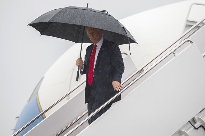 2018年5月1日讯,4月28日晚,美国马里兰州安德鲁斯空军基地,特朗普赶赴密歇根参加集会后返回。下飞机时遇到大风,伞被吹翻。 资料图 特朗普打伞走下飞机 资料图 走下飞机时,特朗普独自撑伞。 延伸阅读特朗普喊话美国会:不给我拨款修墙 就让政府关门 文章导航 萨拉赫免遭禁赛 媒体:两个利好消息或许会激发出埃及球王更好的状态巴萨球队游行 极大可能将在西甲联赛最后一轮比赛结束之后举行