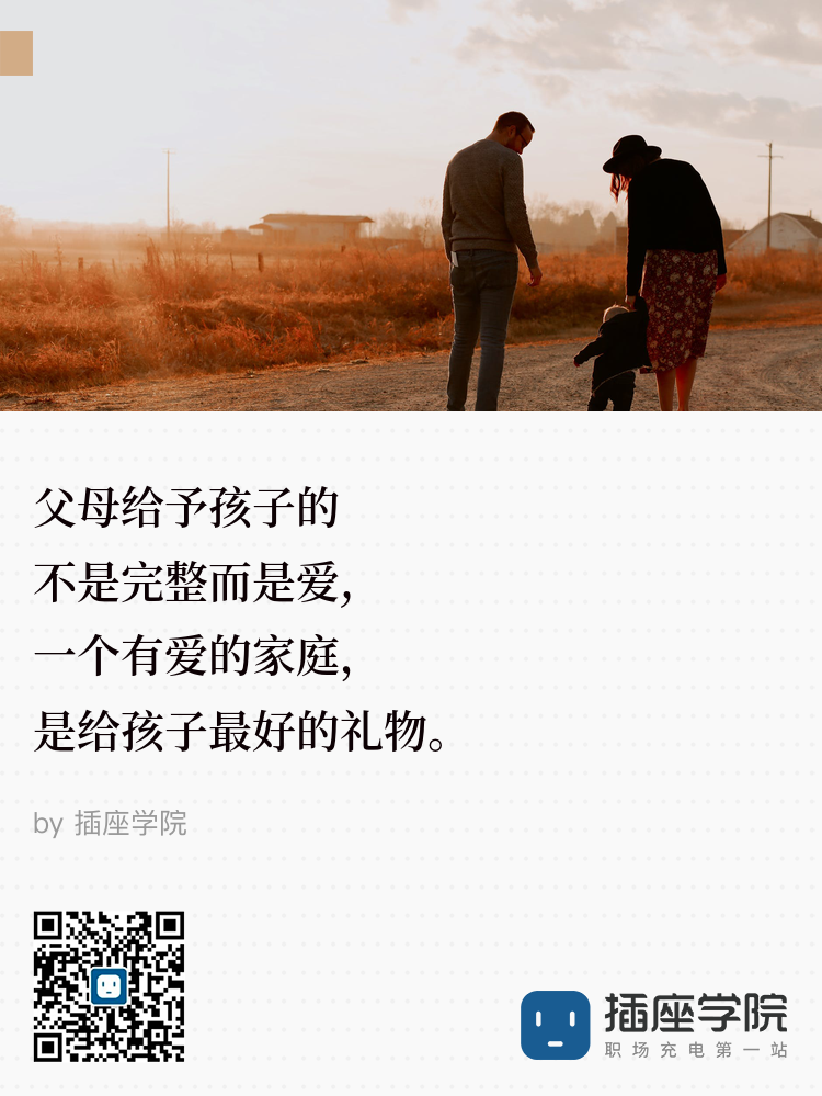 所以,我想说的是,父母给予孩子的不是完整,而是爱。一个有爱的家庭是给孩子最好的礼物。